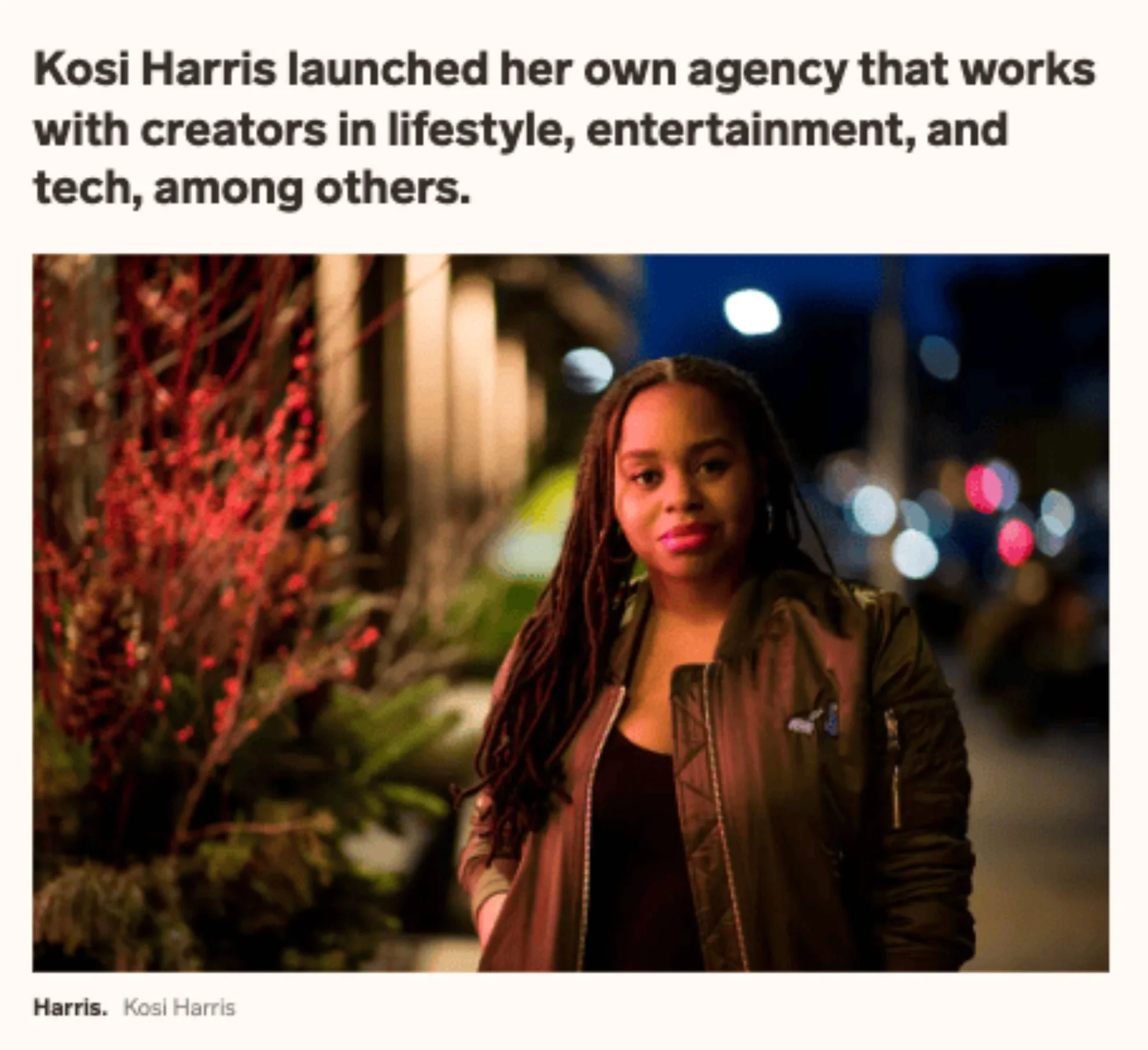 Kosi Harris launched her own agency that works with creators in lifestyle, entertainment, and tech